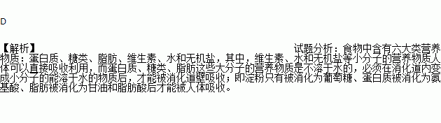 A.淀粉 B.脂肪 C.蛋白质 D.维生素