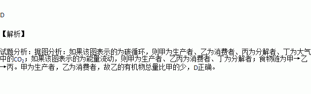 A.若用右图表示该生态系统的碳循环,则丁为微生物