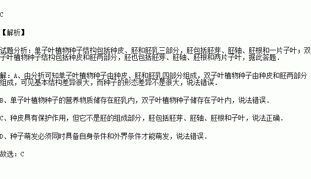 C.种皮没有了 D.胚被破坏了