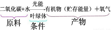 点评:光合作用的原料是二氧化碳和水,产物是有机物和氧气,条件是光和叶绿体.