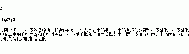 D.小肠绒毛中有毛细血管和毛细淋巴管