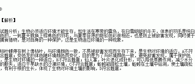 A.鱼儿离不开水 B.蚯蚓使板结的土壤疏松