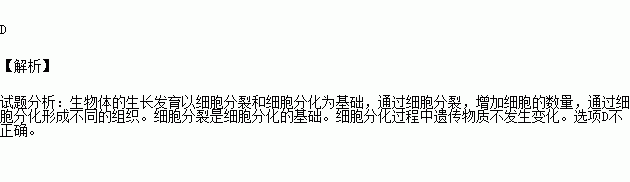 A.生物体的生长发育是细胞分裂和细胞分化的结果