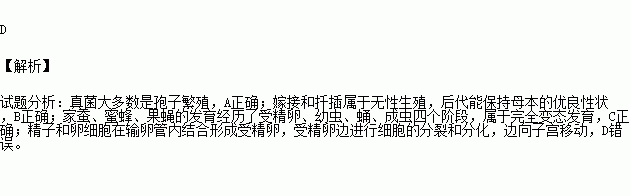 D.卵细胞在输卵管内受精,到达子宫后开始进行细胞分裂