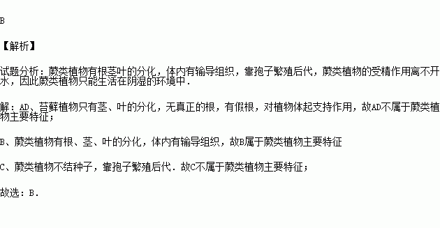下列叙述属于蕨类植物主要特征的是( )
