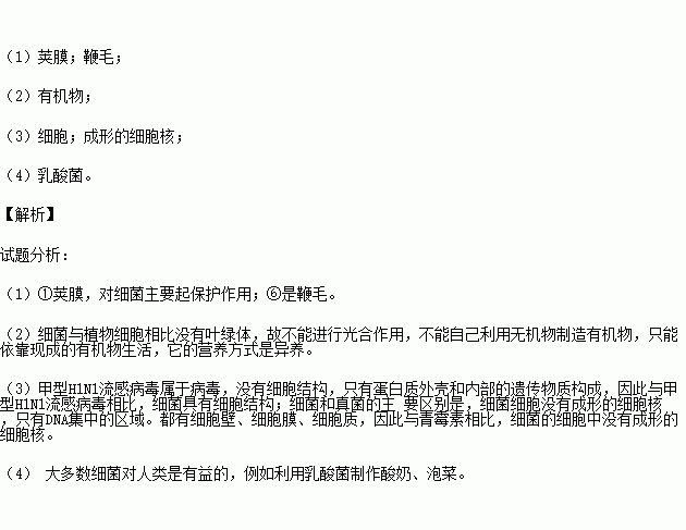 (3)与甲型H1N1流感病毒相比,细菌具有 结构;