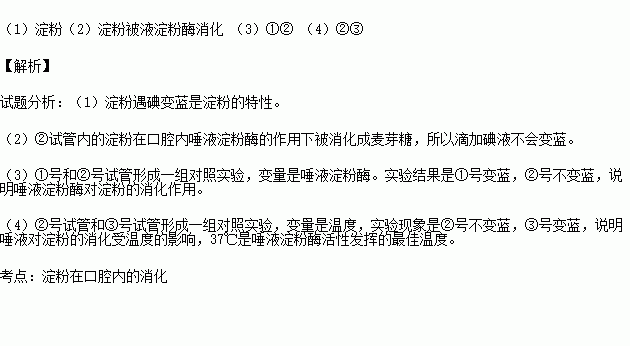 (4)能说明唾液对馒头的消化作用受温度影响的两支试管是 。