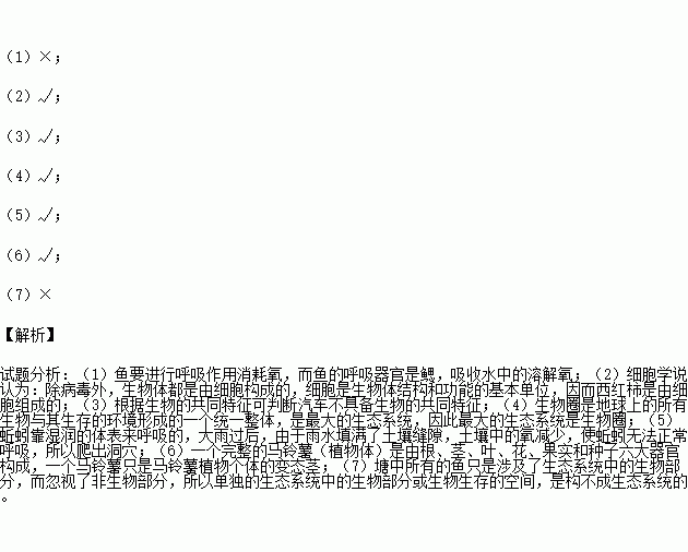 £¨7£©Ò»¸ö³ØÌÁÖÐËùÓеÄÓã¾ÍÊÇÒ»¸öÉú̬ϵͳ¡££¨ £©