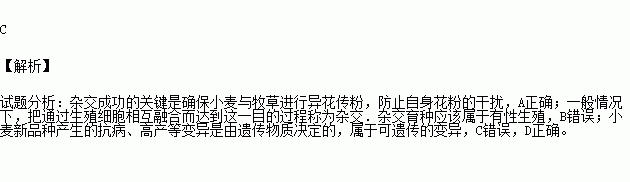 国家最高科技奖获得者、小麦育种专家李振声历时20多年,通过小麦与牧草杂交实验培育出抗病、高产的小麦新品种。以下有关叙述,错误的是