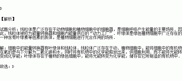 D.线粒体能将光能转变成化学能贮存在有机物中