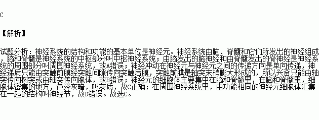 C.在中枢神经系统内,神经元胞体集中出现的部位叫灰质