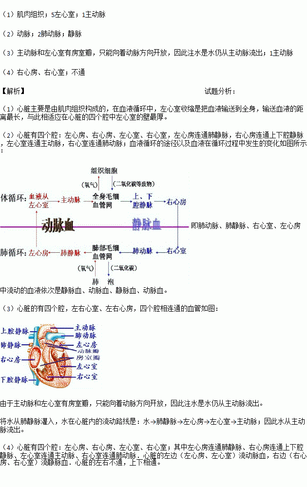 (4)在心脏的四个腔中,始终流静脉血的是______。