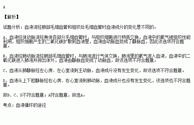 D 上腔静脉→右心房→右心室→ 肺动脉