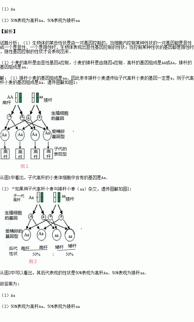 小麦的高秆是由显性基因A控制,小麦的矮秆是由隐性基因a控制.现将上述高秆小麦与矮秆小麦进行杂交,子代小麦是高秆.请分析回答下列问题.