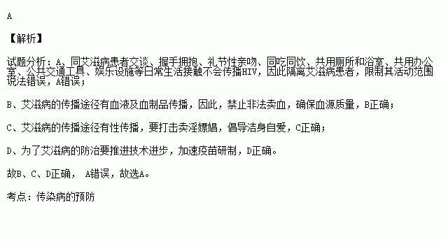 A. 隔离艾滋病患者,绝不与之交往 B. 禁止非法卖血,确保血源质量
