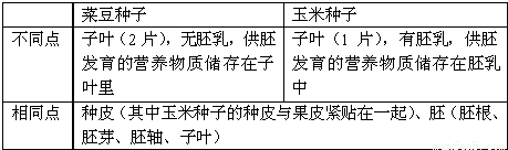 解答:解:菜豆种子和玉米种子的结构的异同为: