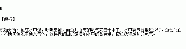 小明和妈妈一起去菜市场买鱼,发现卖鱼的叔叔不断向鱼池时通入气体,这样做的目的是( )