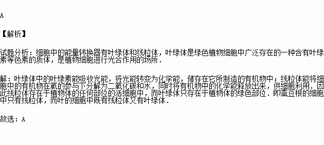 (2011•乐山)在蚕豆根和叶的细胞中,分别含有的能量转换器是( )