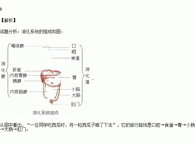 李昊吃西瓜时把西瓜籽也吞进了肚里,这粒瓜籽会在体内经过怎样的一段旅程