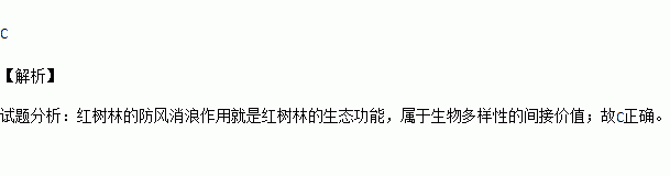 C. 红树林的防风消浪作用属于生物多样性的间接价值