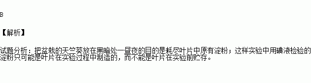 在“绿叶在光下制造有机物”的实验中,把盆栽的天竺葵放在黑暗处一昼夜的目的是: