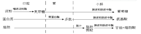 淀粉,脂肪和蛋白质的消化过程如下图: