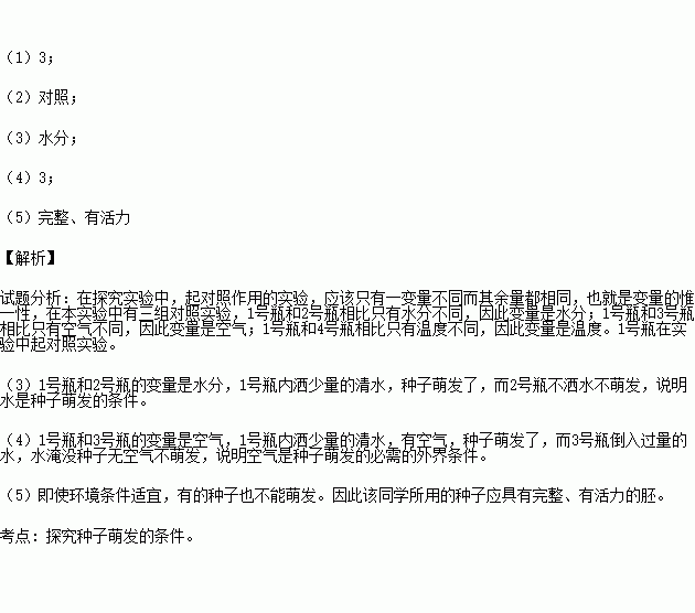 £¨3£©£±ºÅÆ¿ºÍ£²ºÅÆ¿µÄʵÑé½á¹û˵Ã÷_______ÊÇÖÖ×ÓÃÈ·¢Ëù±ØÐèµÄÍâ½çÌõ¼þ¡£