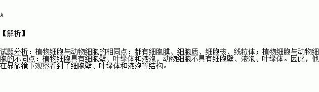 某同学在显微镜下观察到一些细胞,他判断为植物细胞,因为他观察到了( )