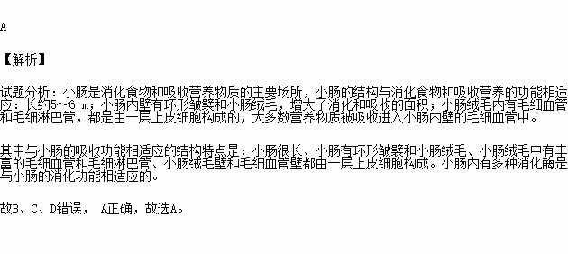 C.小肠绒毛内有毛细血管和毛细淋巴管