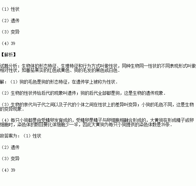 £¨4£©Èç¹û´ó»Æ¹·µÄÌåϸ°ûȾɫÌåÊýÊÇ78Ìõ£¬ÄÇô¸Ã´ó»Æ¹·ÎªÃ¿Ö»Ð¡¹·ÌṩÁË ÌõȾɫÌ壮