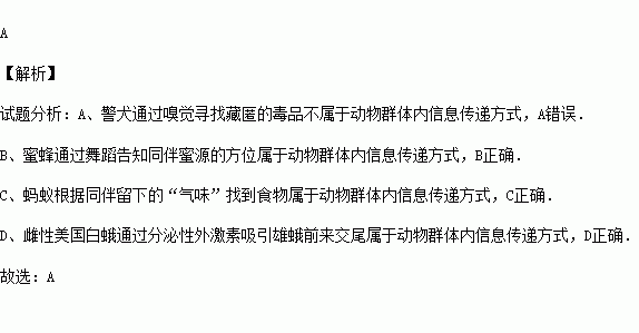 动物可以通过动作、声音和气味等传递信息.下列各项中,不属于动物群体内信息传递方式的是( )