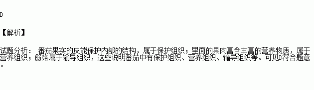 取一个成熟的番茄果实,用开水烫过,即可撕下表皮,露出里面的果肉,吃的时候感觉有点酸味,并能看到一些“筋络”.这说明番茄中可能有( )