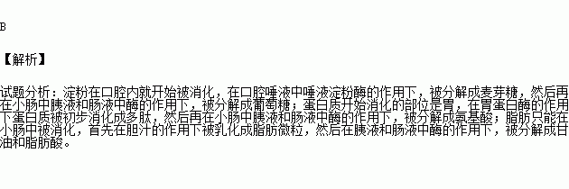 在消化道的某一部位内抽取内容物进行化验,结果发现其中的脂肪类物质还没有被消化,蛋白质却已被初步消化,那么该部位应是( )