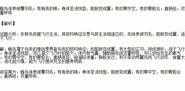 有人说:“鸟的全身都为飞行而设计”。下列选项中除哪项外,都是鸟类适于飞行的特点( )