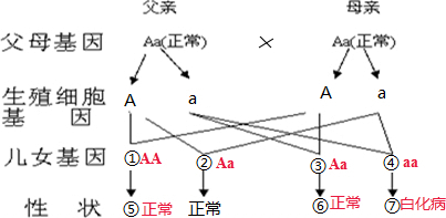 故答案为:①AA;②Aa;③Aa;④aa;⑤正常;⑥正常;⑦白化病.