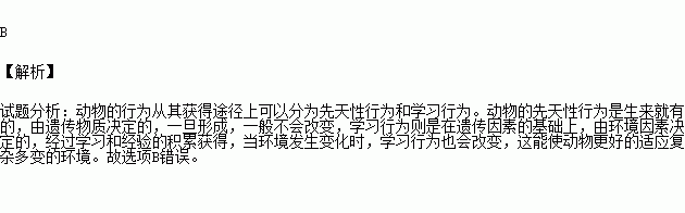 D.动物的学习行为可以让它们更好地适应复杂环境的变化