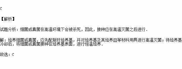 A.配制培养基→高温灭菌→接种→冰箱