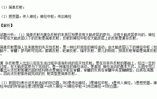 (2)若图中5表示该反射活动的效应器,则神经冲动的传导途径是