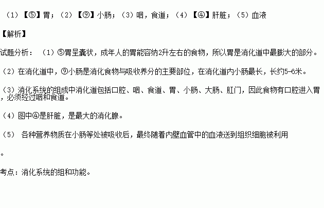 (4)上图中所示的体积最大的消化腺是【 】 。