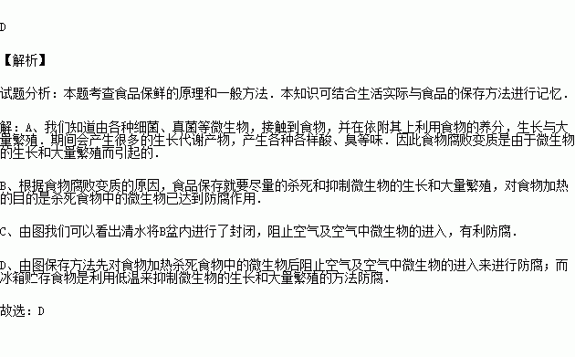 如图是一种简易的食物保存方法,下列叙述不合理的是( )