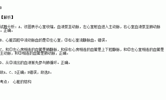 如图为心脏工作示意图,请据图分析,下列叙述中不正确的是( )