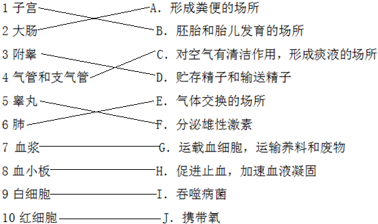 点评:此题是一道综合题,关键掌握男女性生殖系统的结构和功能、呼吸道与呼吸相适应的特点,血液的成分和主要功能,平时学习时要注意识记.