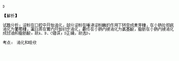 食物中的蛋白质、脂肪、淀粉在消化道内开始消化分解的顺序是 :