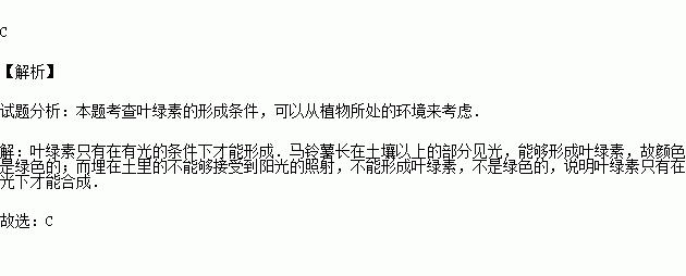 马铃薯露出地面的部分常会变成绿色,而地下部分则不会,这可以说明( )