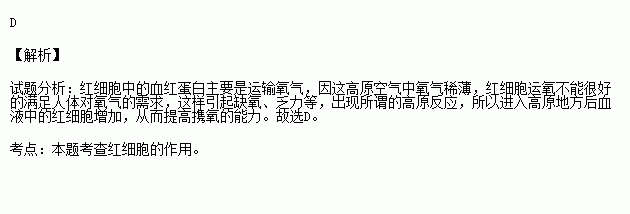 C、营养补充不及时,能量不足 D、血红蛋白跟氧的结合减少