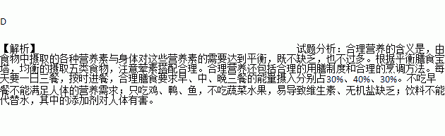 C. 只吃鱼、肉,不吃蔬菜 D. 每日三餐定时定量,注意均衡营养