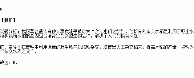 袁隆平,我国著名的遗传学家,因为他对世界的突出贡献曾获得“中国特等发明奖”和多个国际奖项,他培育出的是( )