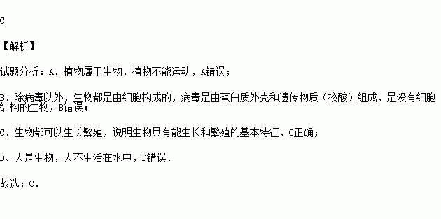 C.生物都能繁殖后代 D.生物都必须生活在水中