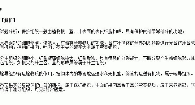 西红柿果皮、果肉和其中的筋络分别属于下列组织中的哪类( )
