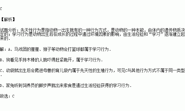 A.马戏团的猩猩、猴子等动物会打篮球